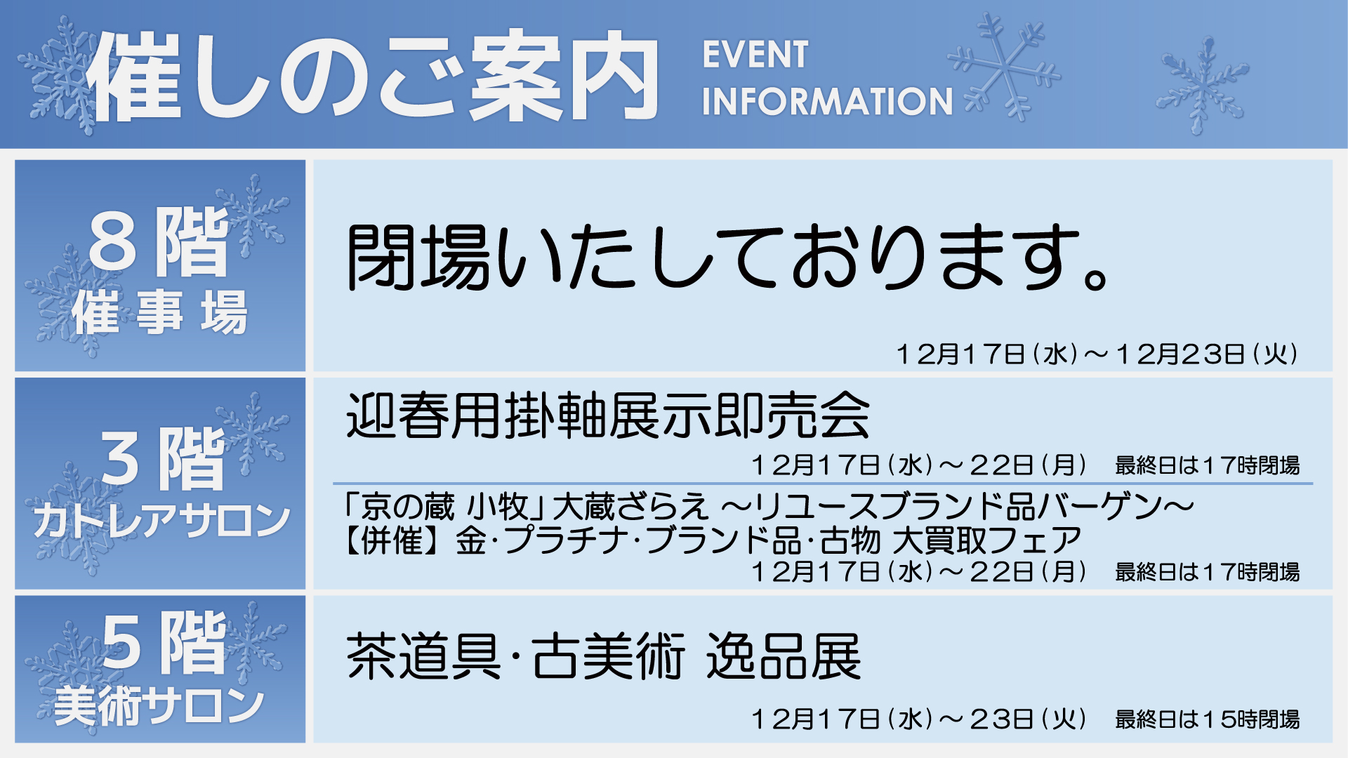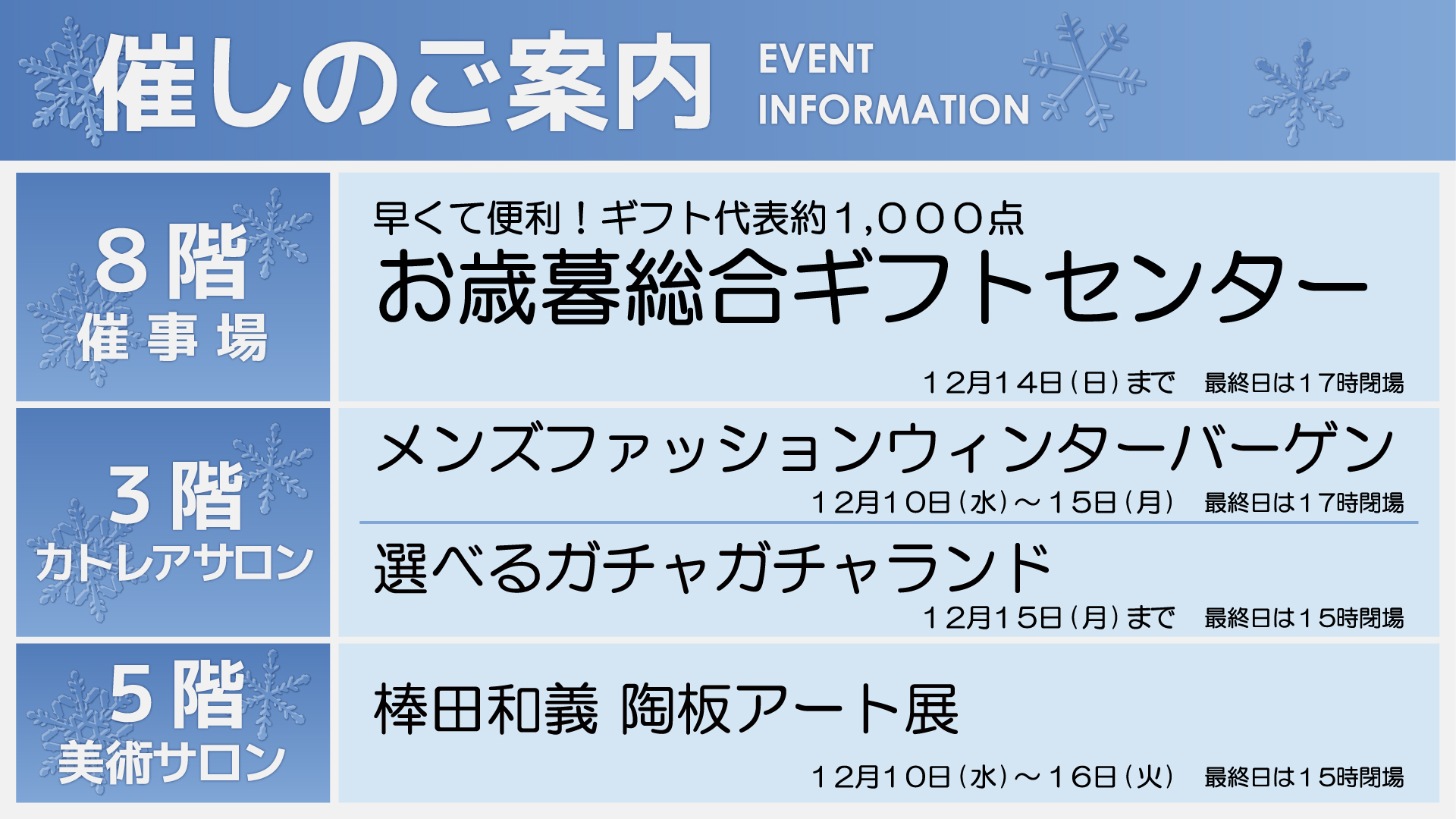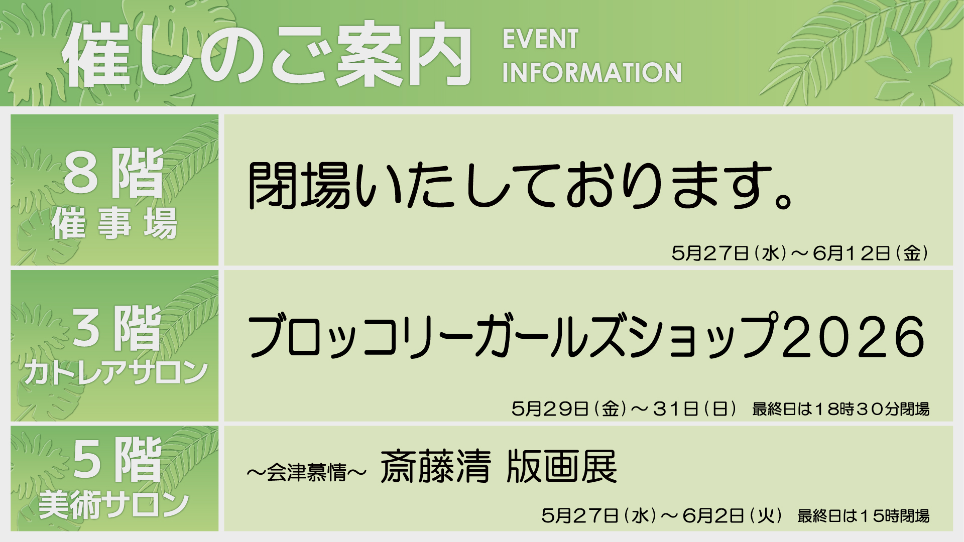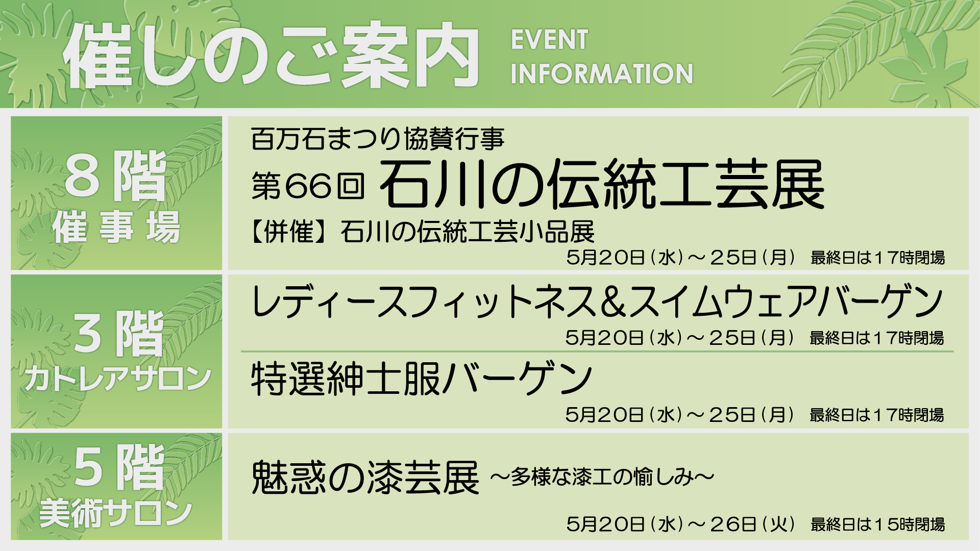 3階 カトレアサロン、4階~9階 10時 ~ 18時30分