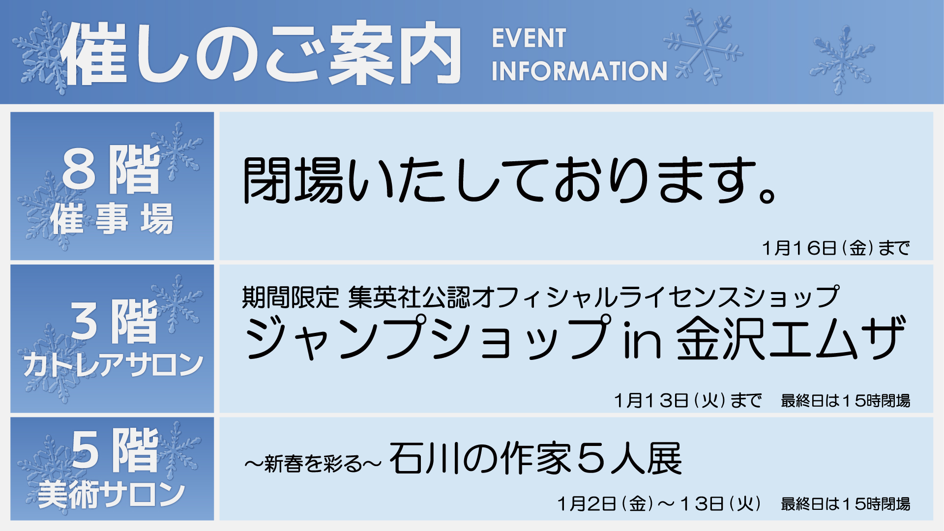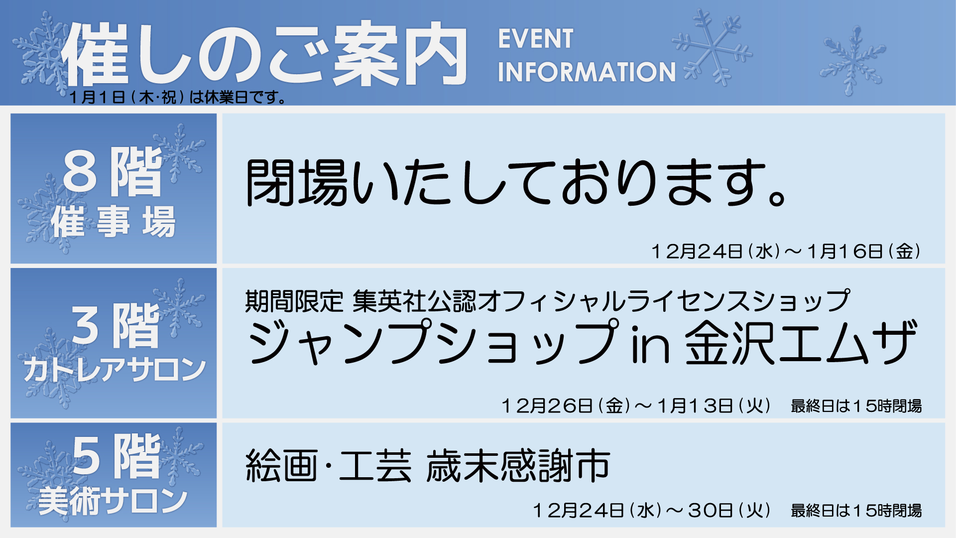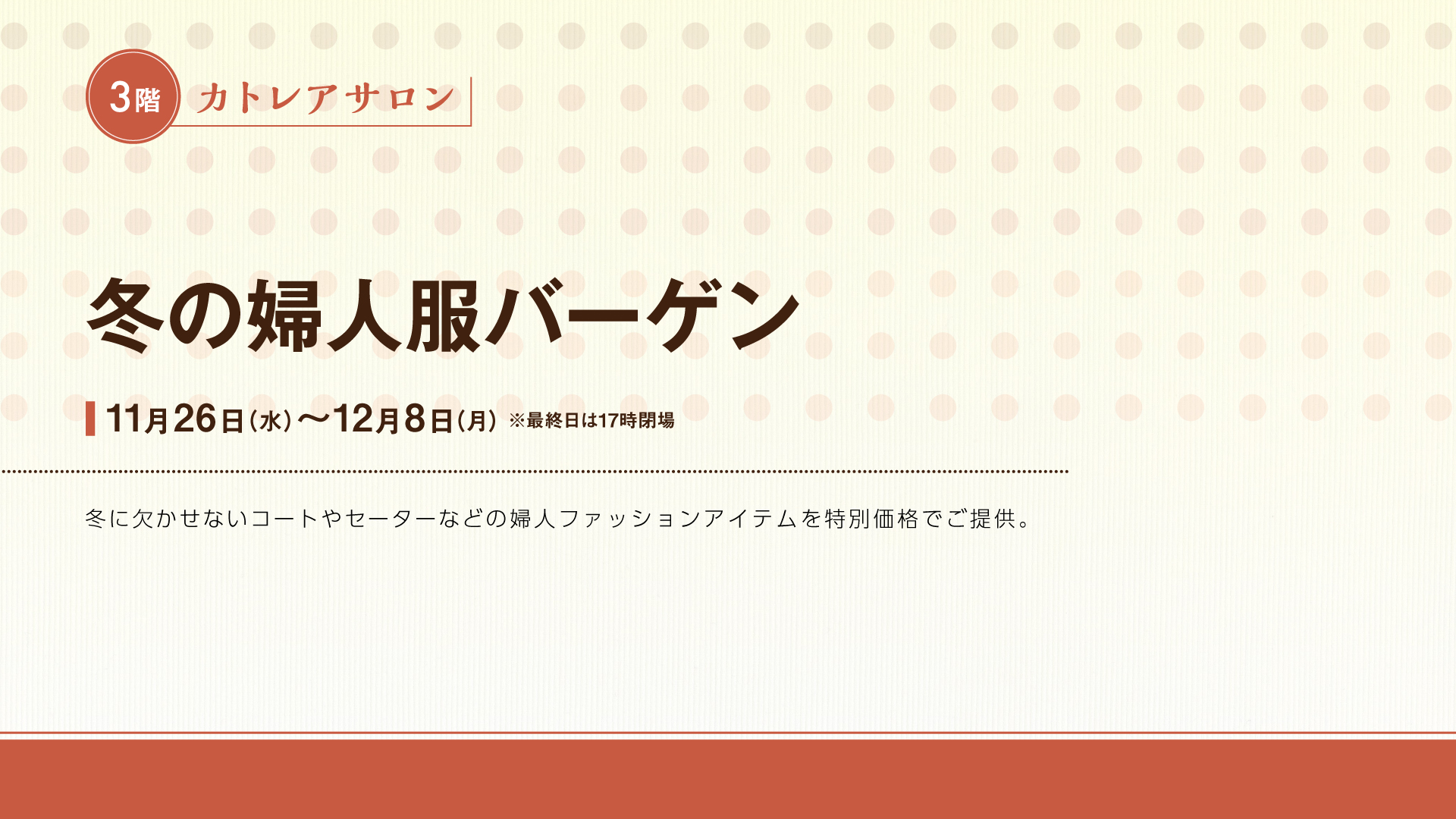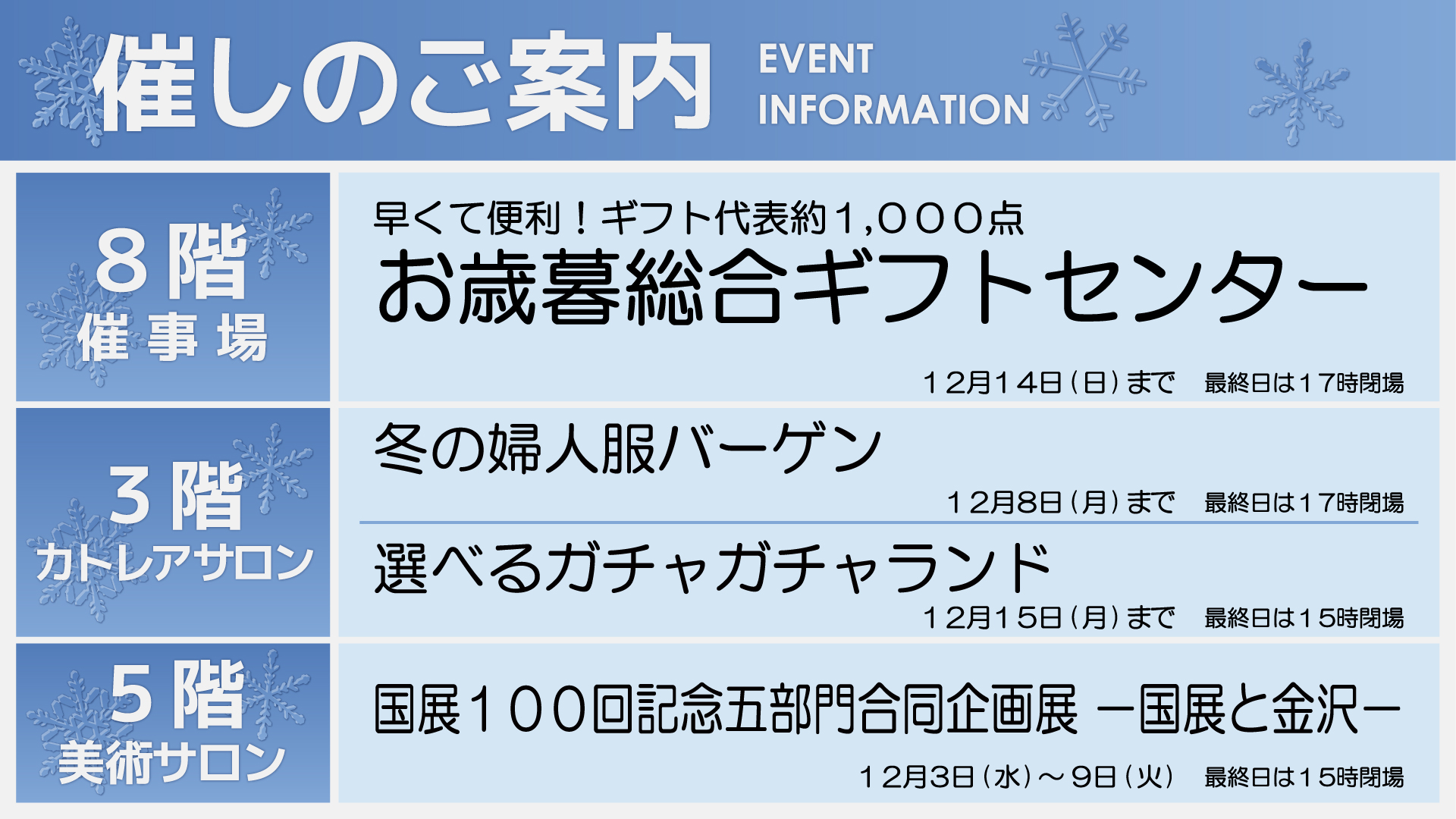 3階 カトレアサロン、4階~9階 10時 ~ 18時30分