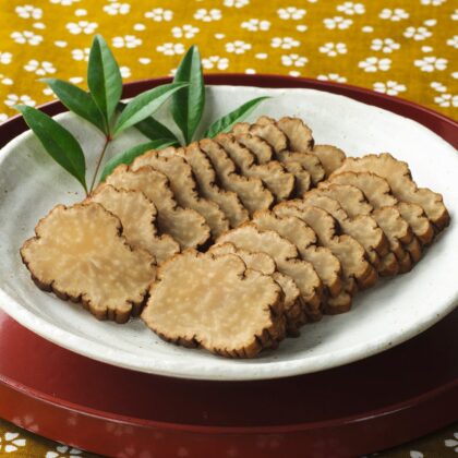 昔ながらの伝統の製法で作られた”からし蓮根”・シャキッとした歯ごたえと絶妙な辛さがクセになります。