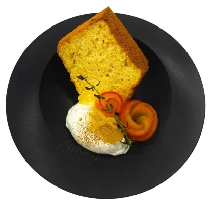 国産刻み柚子とカルダモンが香りを添え、ヨーグルトクリームとリンゴジャムで仕上げ、リンゴのお花が華やかさをプラス。軽やかな食感と果実の豊かな味わいを楽しめる、冬にぴったりのスイーツです。