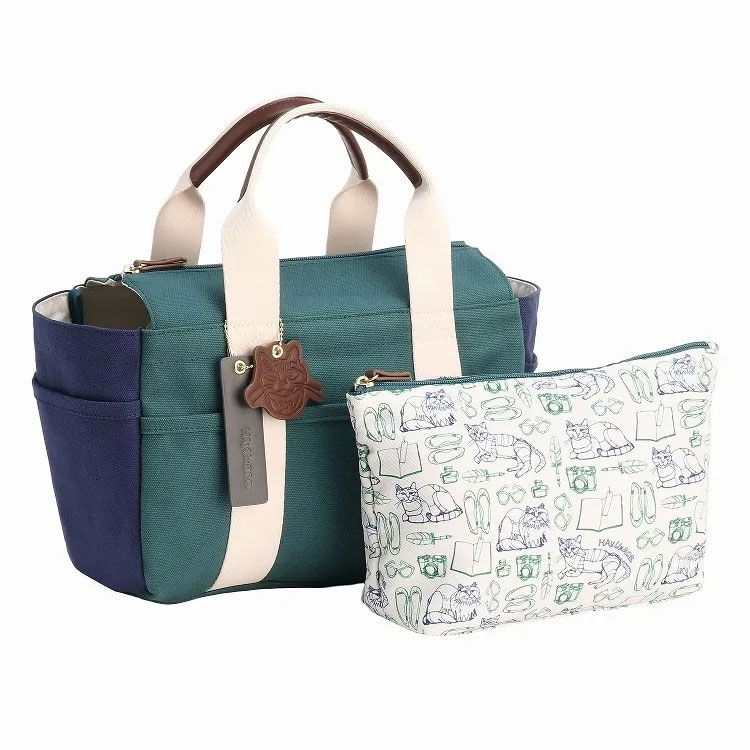 外ポケットが特徴のトートシリーズ。オリジナル柄のプリントが可愛いポーチ付き。
