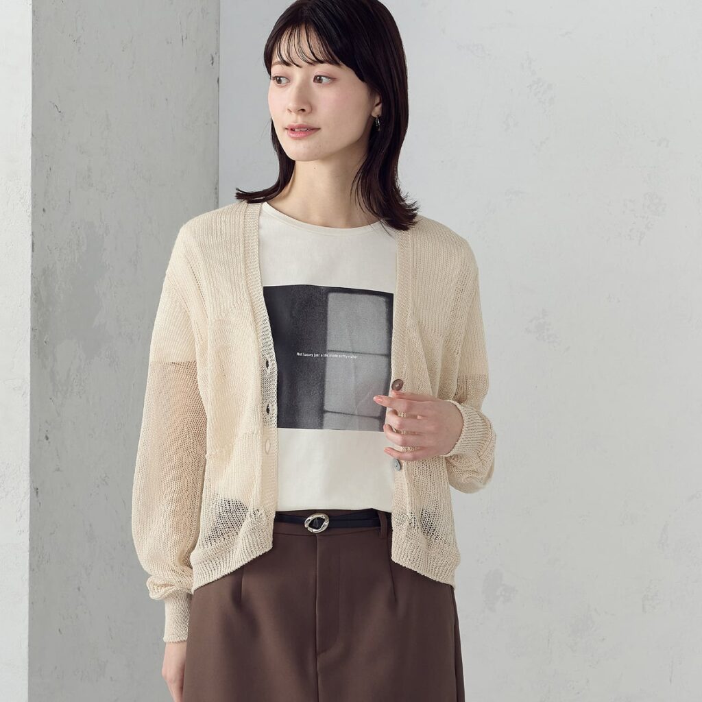 日本製&ホールガーメントのサマーニット。和紙ならではのシャツ感が特徴のサマーニットです。室内の冷房対策のカーディガンとしてもおすすめです。