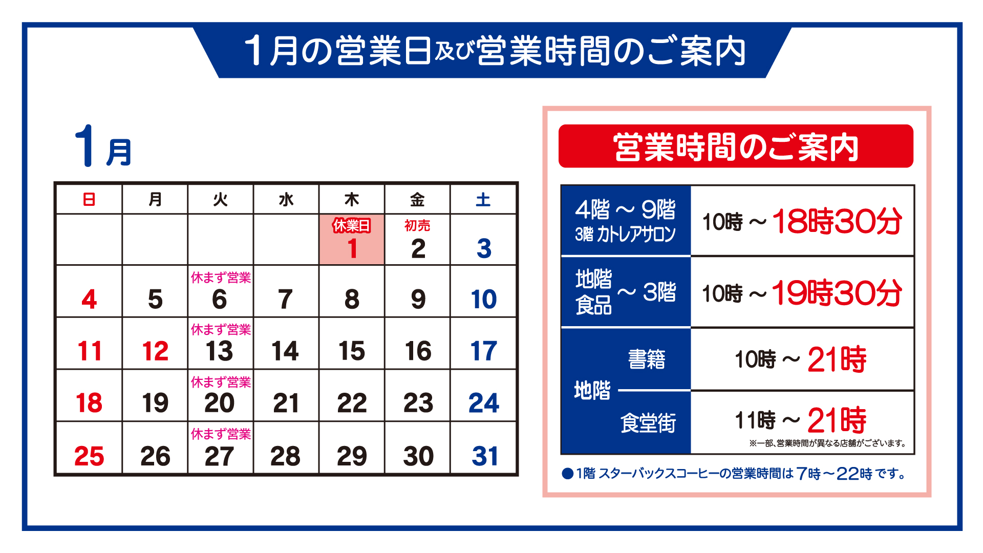 3階 カトレアサロン、4階~9階 10時 ~ 18時30分