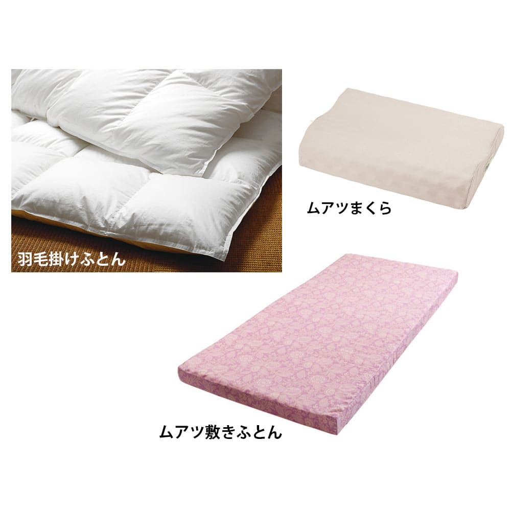 (羽毛掛けふとん、ムアツ敷きふとん、ムアツまくら)