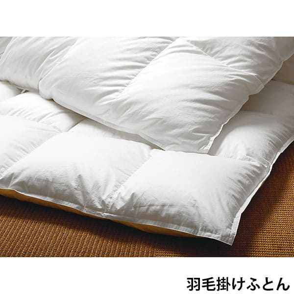ハンガリー産ホワイトグース90%は弾力、保温性に優れ、綿サテンの側生地とともに高品質な羽毛ふとんに仕上がっています。