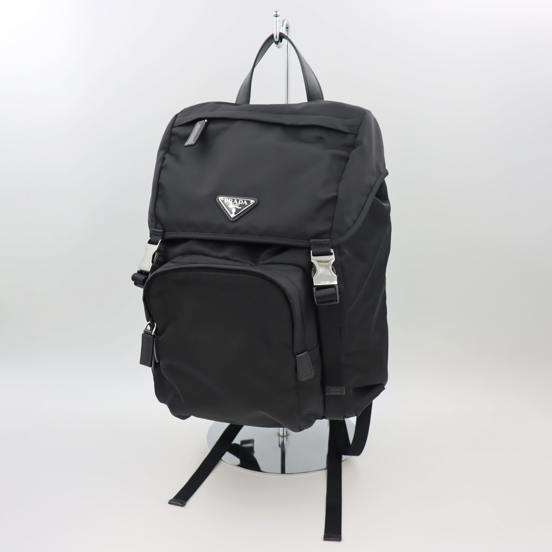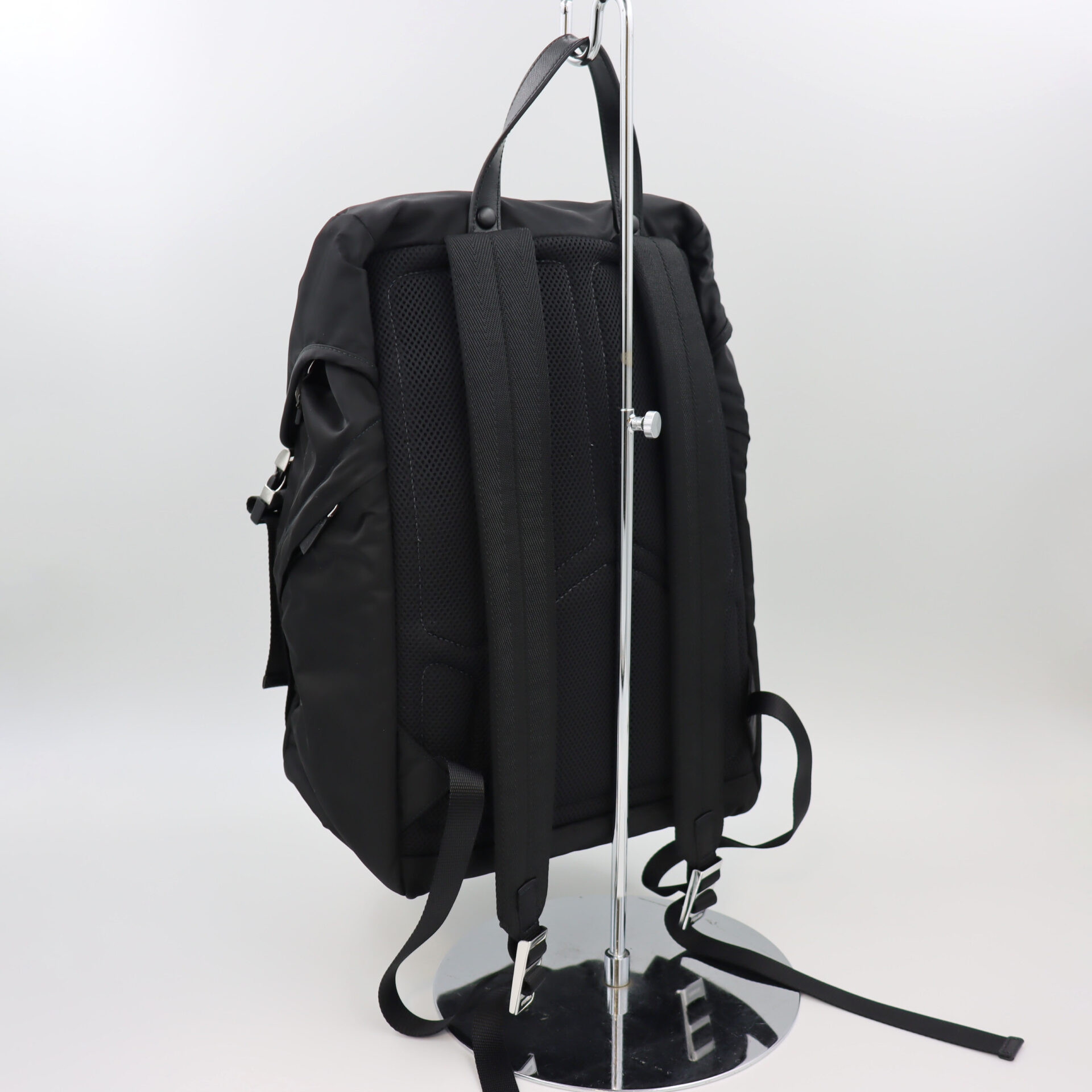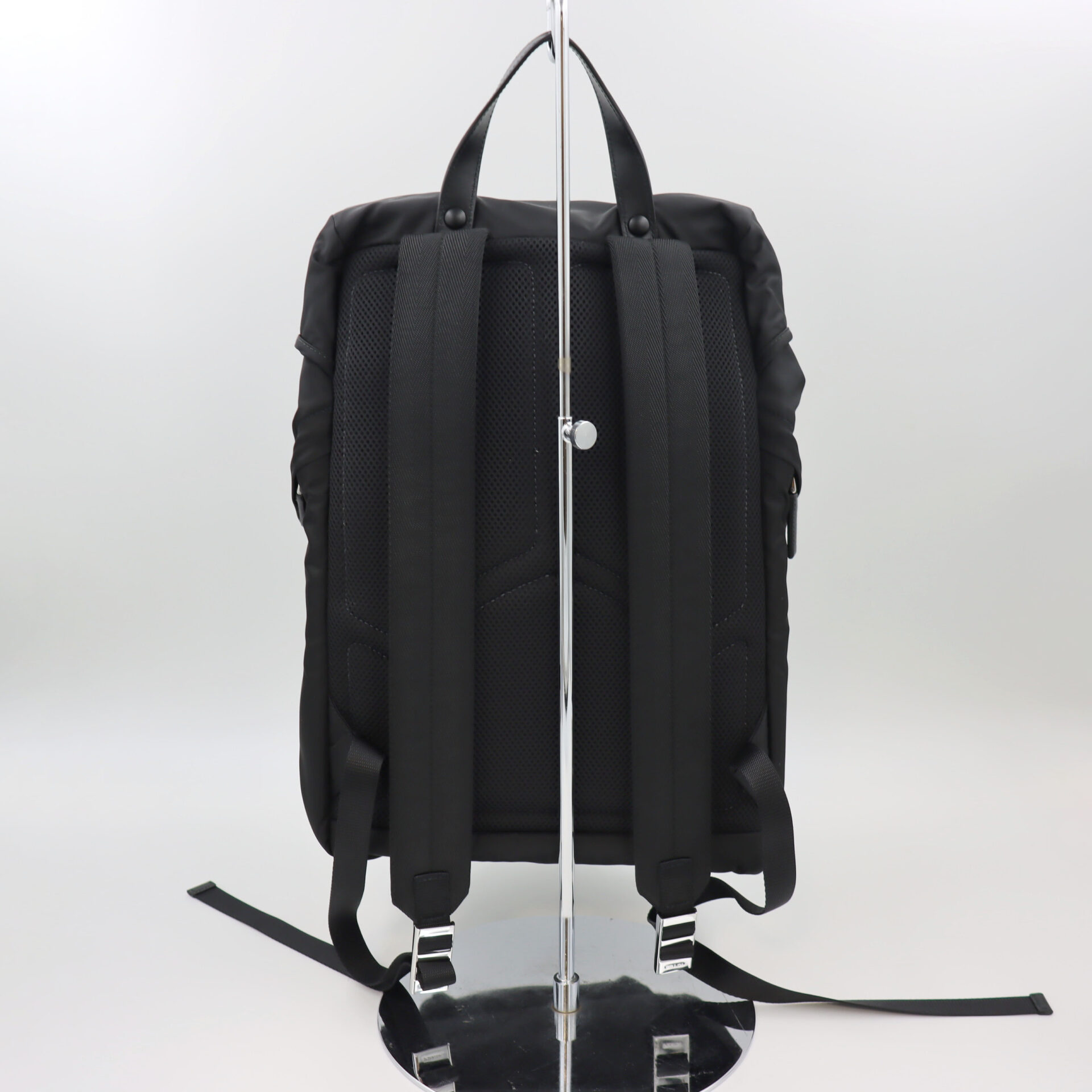 ブラックのナイロン生地に、トライアングルロゴがワンポイントになったシンプルなリュックサックです。