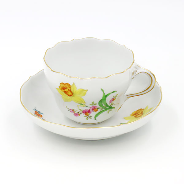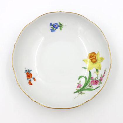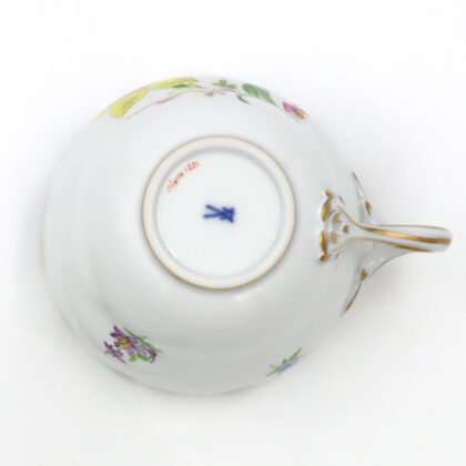 「マイセン」には36種類の「基本の花」があり、そのうちのひとつに草原に咲く小花を絡ませた絵柄。