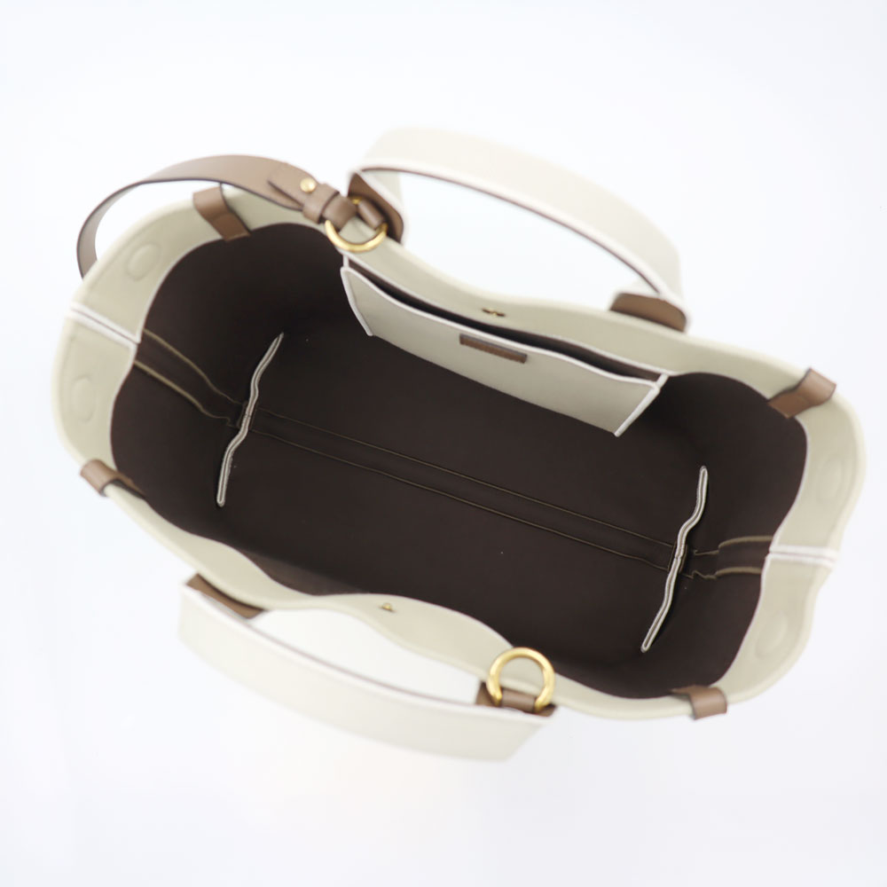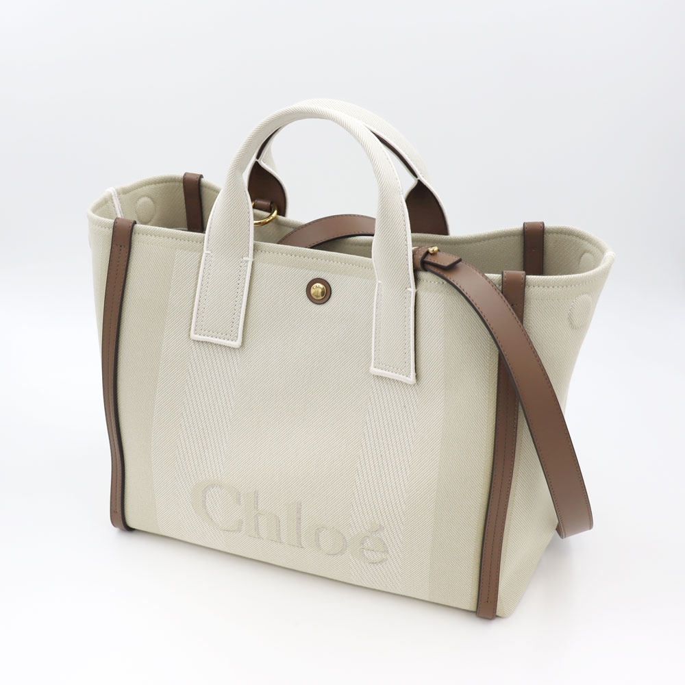 「Carry」ラインのトートバッグ。キャンバス地に、ブランドロゴがあしらわれたデザインが特徴。あらゆるシーンで活躍する完璧なプロポーションのキャリーオールです。