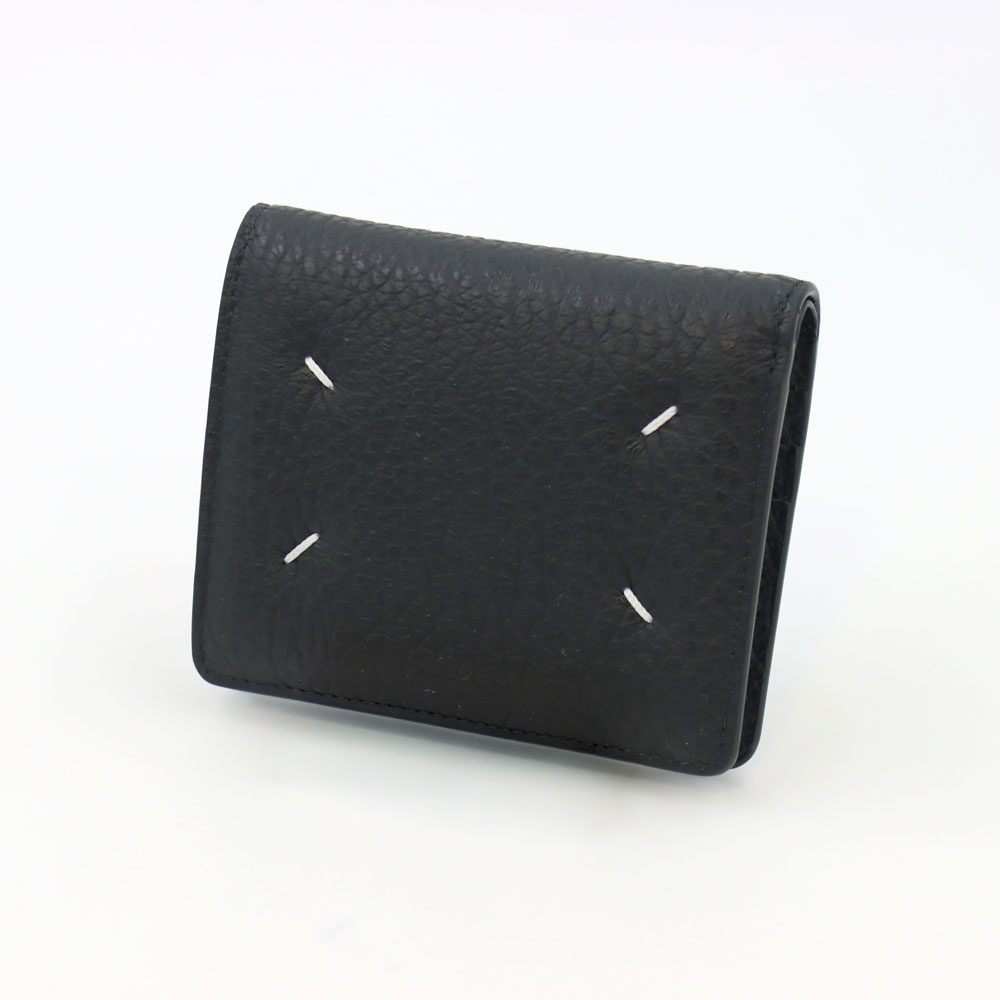 エボンス加工が施されたグレイニーレザー製の二つ折りウォレット。